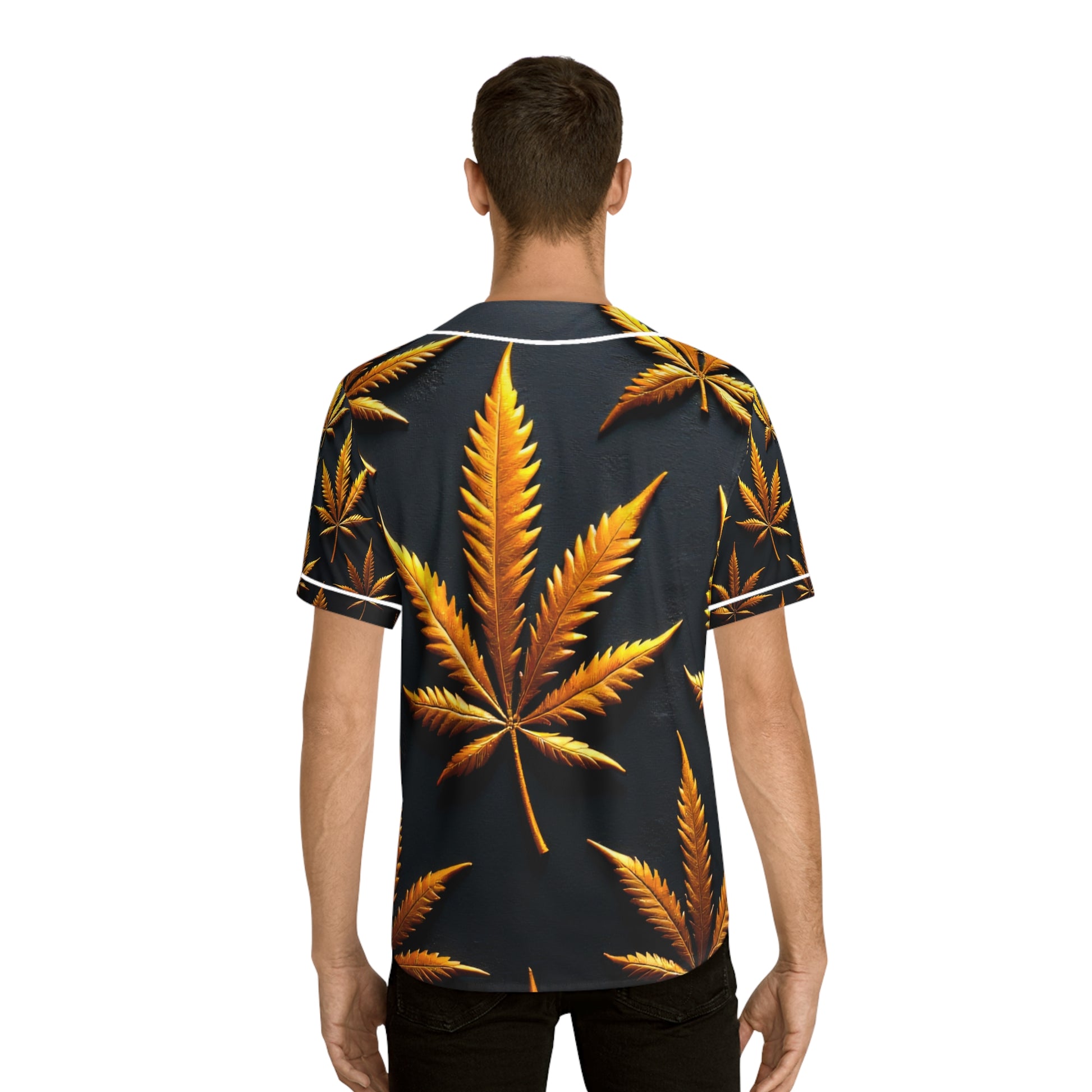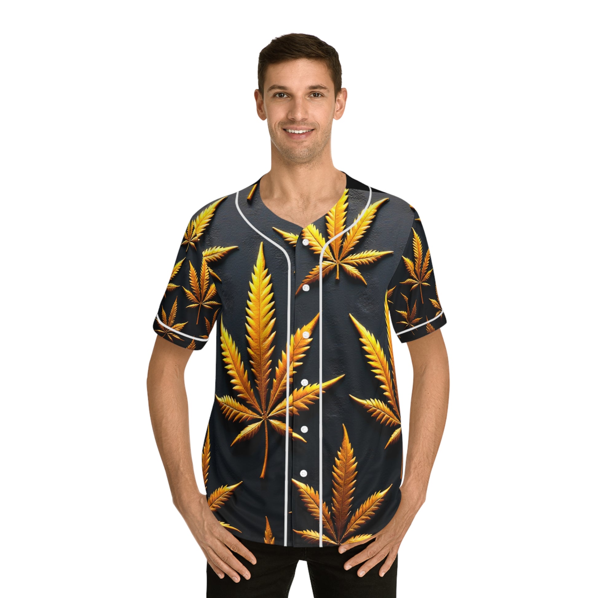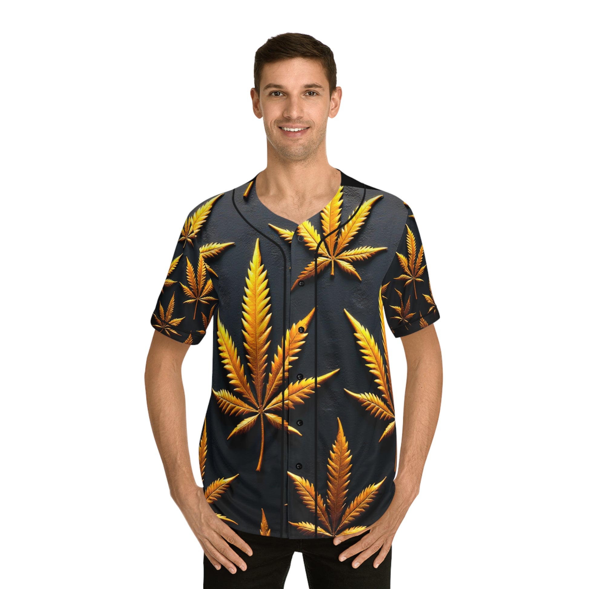 Baseball Jersey - Golden Cannabis, Relaxed Vibe, Perfect for Casual Outings, Festivals, Gifts for Nature Lovers, Unique Sportswear