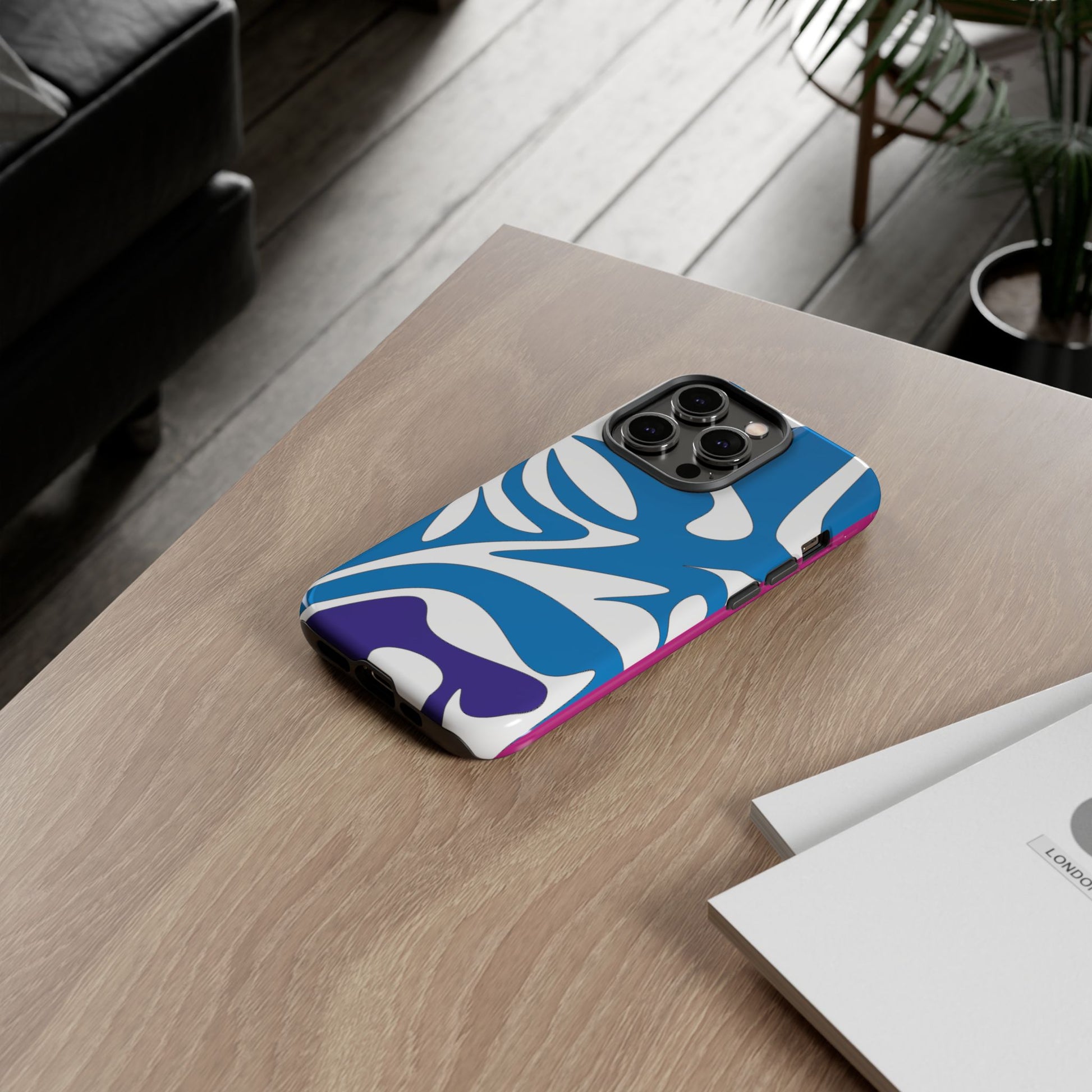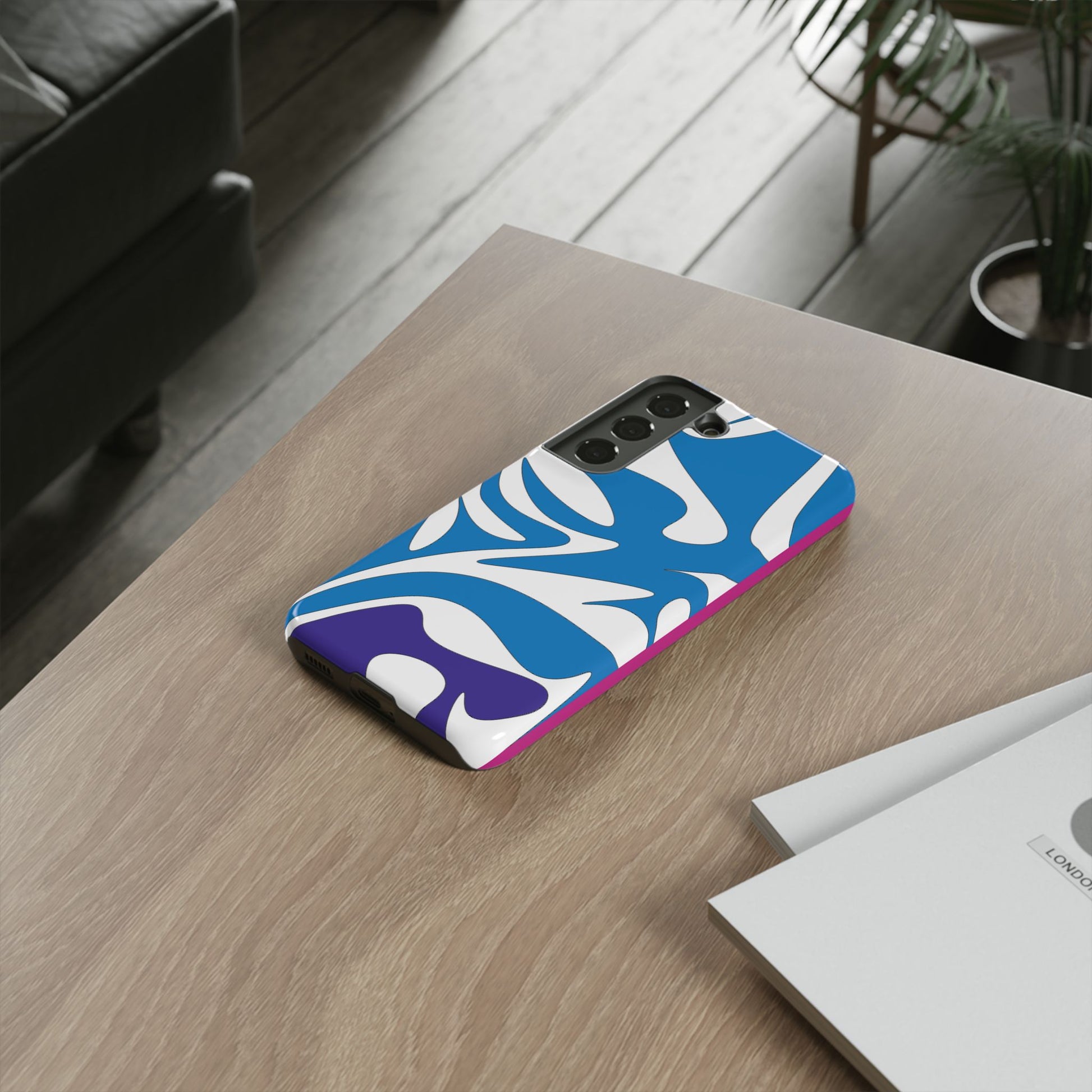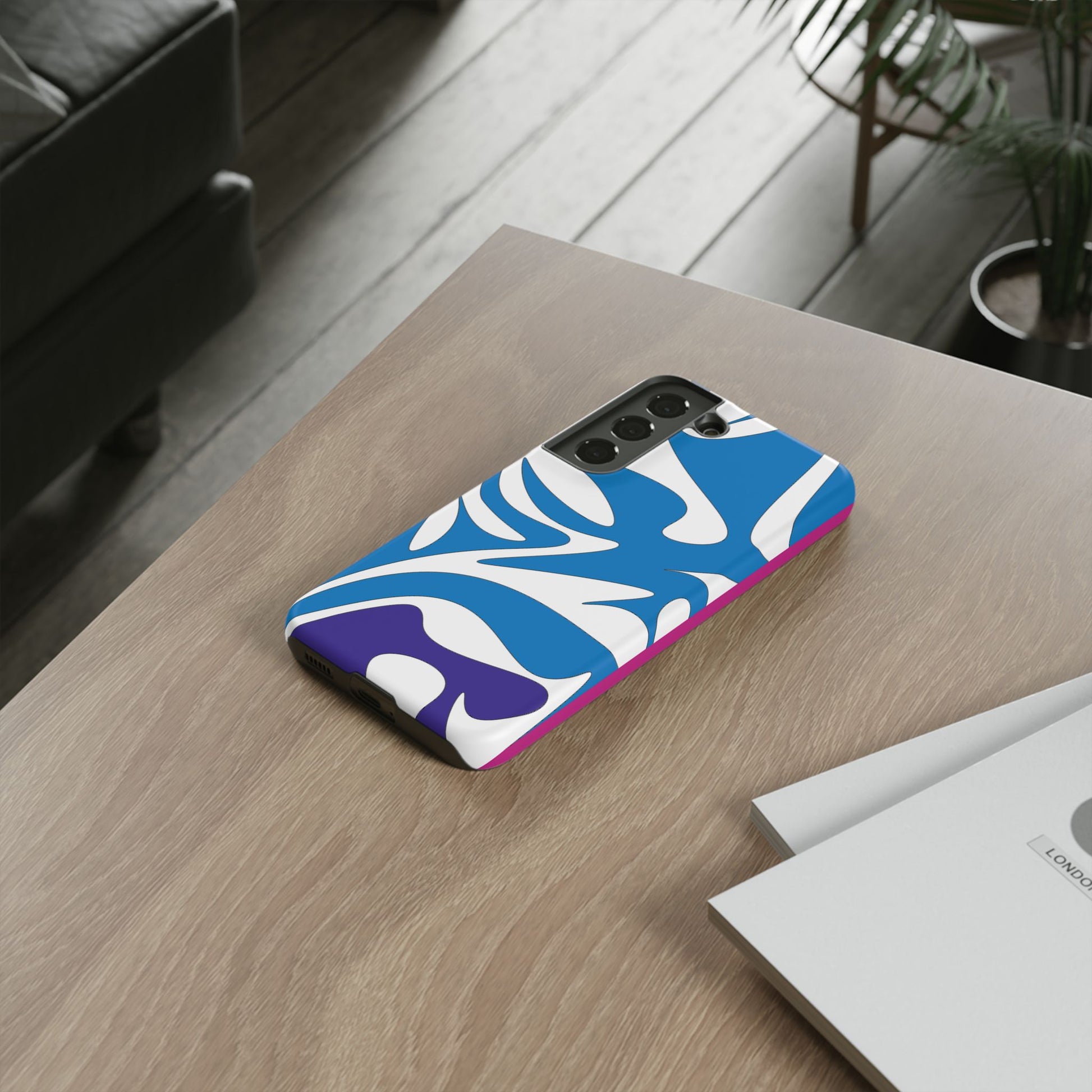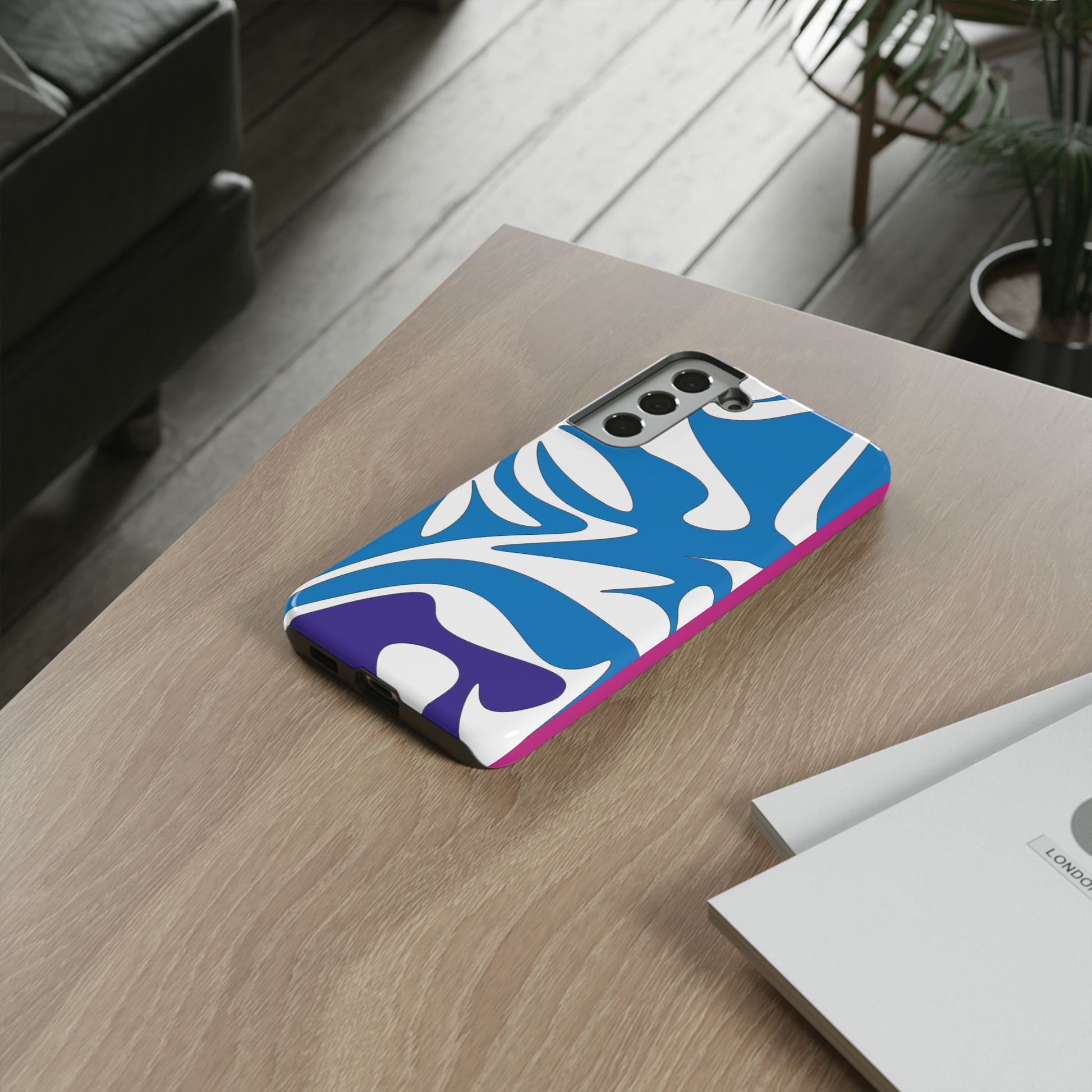 Stylish Tough Phone Case - Blue Abstract Design